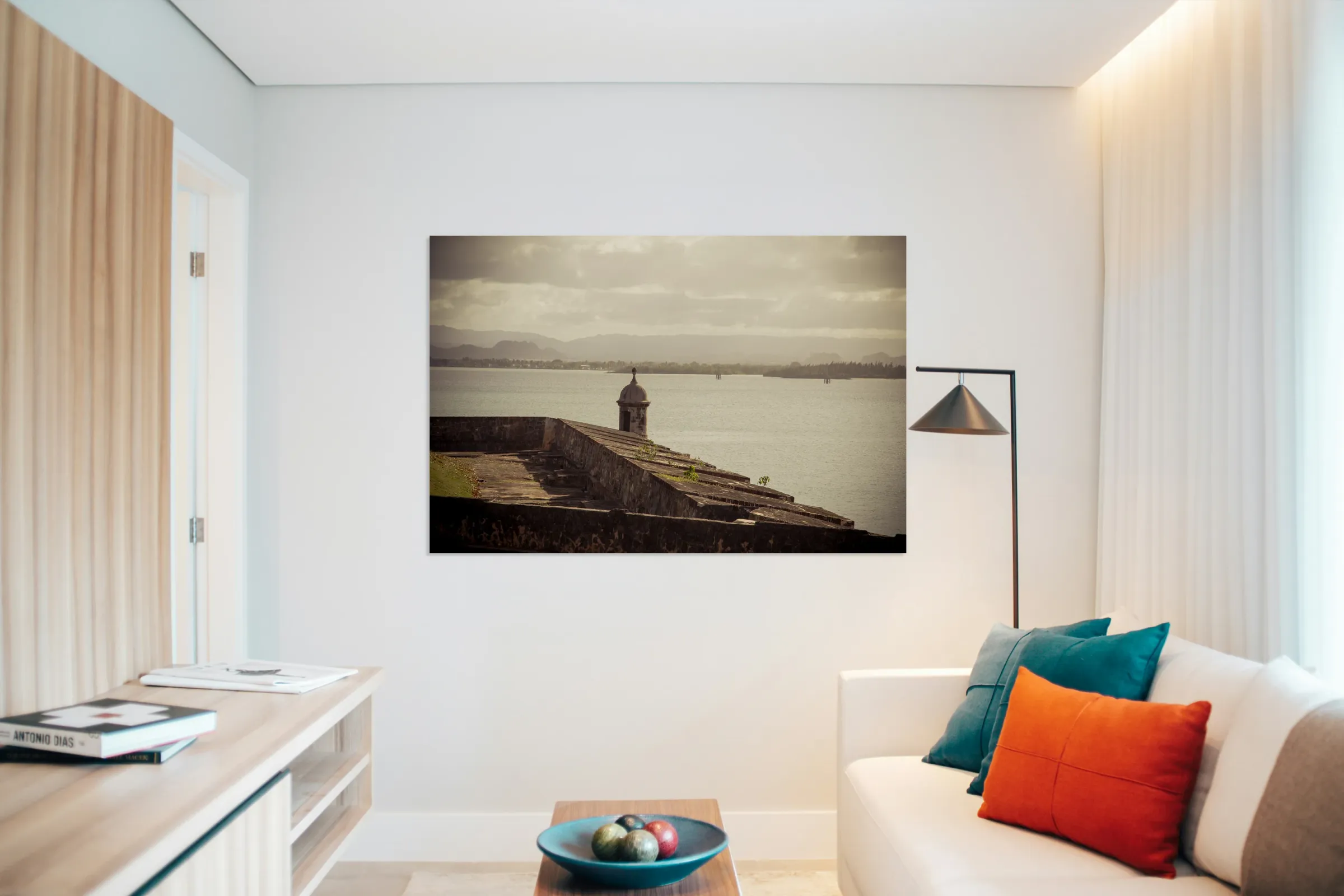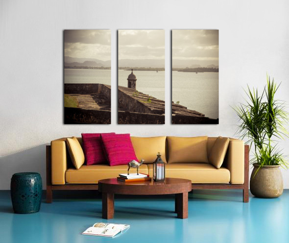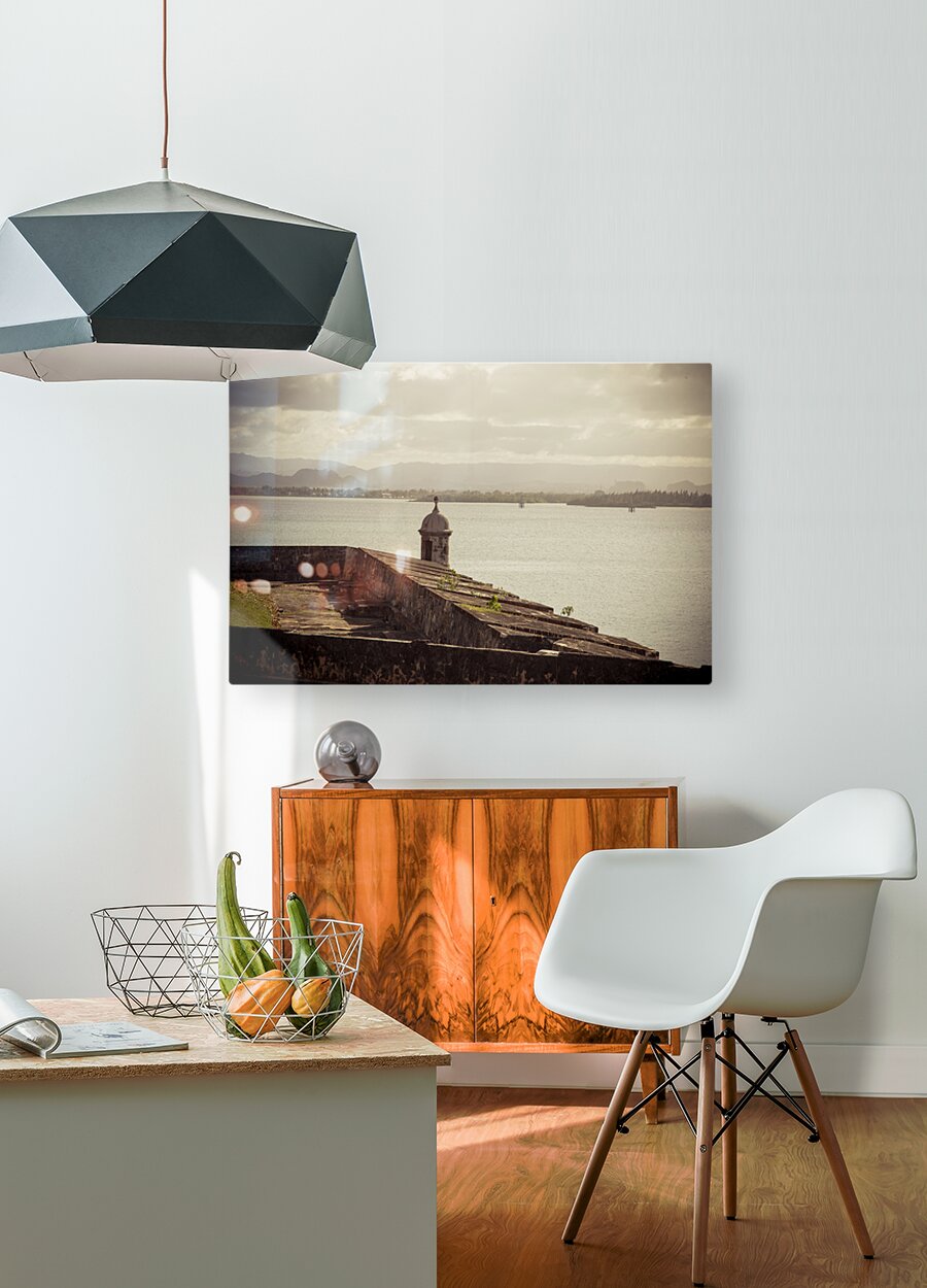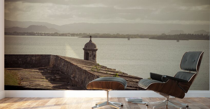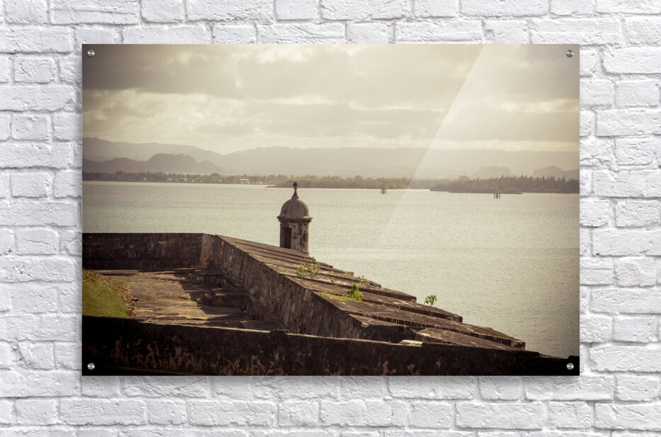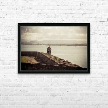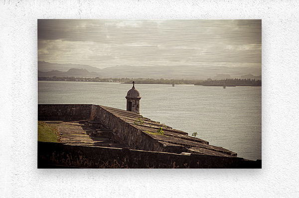 The allure of Puerto Rico unfolds in a rustic landscape view featuring the textured surface of the historic wall in Old San Juan. The image immerses the viewer in the rich details of the weathered wall each groove and imperfection telling a tale of the islands storied past. A commanding guard tower stands sentinel casting its silhouette against the serene waters of the bay. The textured wall a testament to the enduring spirit of Puerto Rico adds a layer of depth to the composition. The guard tower standing with historical significance overlooks the tranquil bay creating a harmonious blend of architectural heritage and natural beauty. The overall scene is infused with a timeless quality inviting contemplation and appreciation for the cultural richness embedded in Puerto Ricos landscapes. This fine art photograph captures the poetic fusion of texture history and coastal charm offering a visual journey into the heart of Puerto Ricos architectural legacy. It is a celebration of the islands enduring resilience and the enchanting interplay between historical elements and the scenic beauty of the bay.