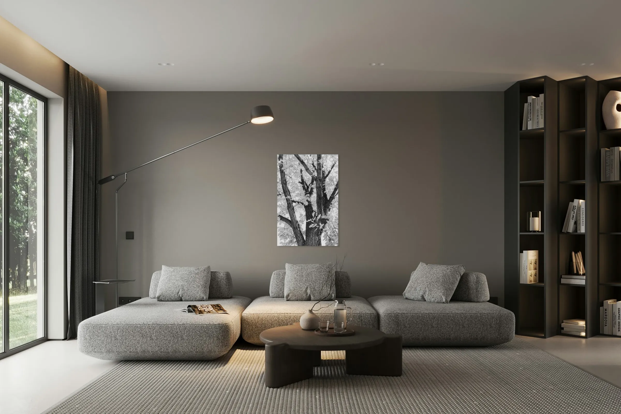 Pour obtenir "Tree mendous Elegance in Black and White" dans une impression encadrée.