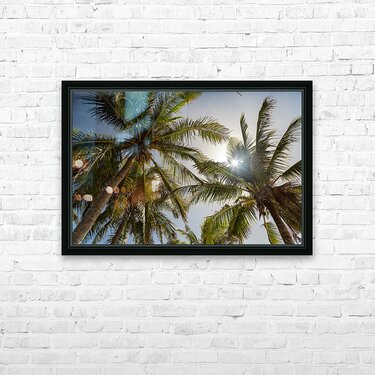 Soaking up the tropical sun and warm temperature as we look up at the coconut trees feeling the rays of the sun. Fine art nature landscape photograph...[+]