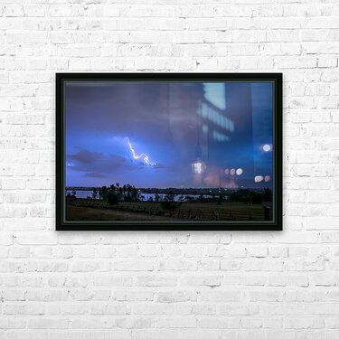Lightning Striking Over Boulder Reservoir Impression du cadre