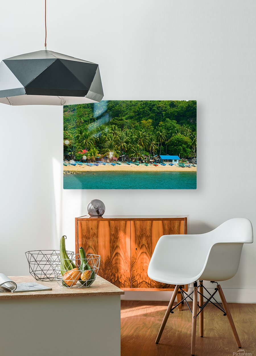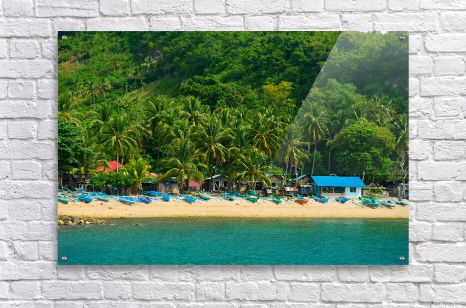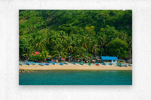 A hidden paradise where the turquoise sea kisses the golden sands this tranquil fishing village is nestled against the lush green embrace of the tropics. Traditional wooden boats rest along the shoreline waiting for the next journey across the waves. Palm trees sway gently in the breeze casting their shadows over the simple homes that line the coast. A place where time slows and nature sings in harmony with the sea. Negros Oriental Philippines.