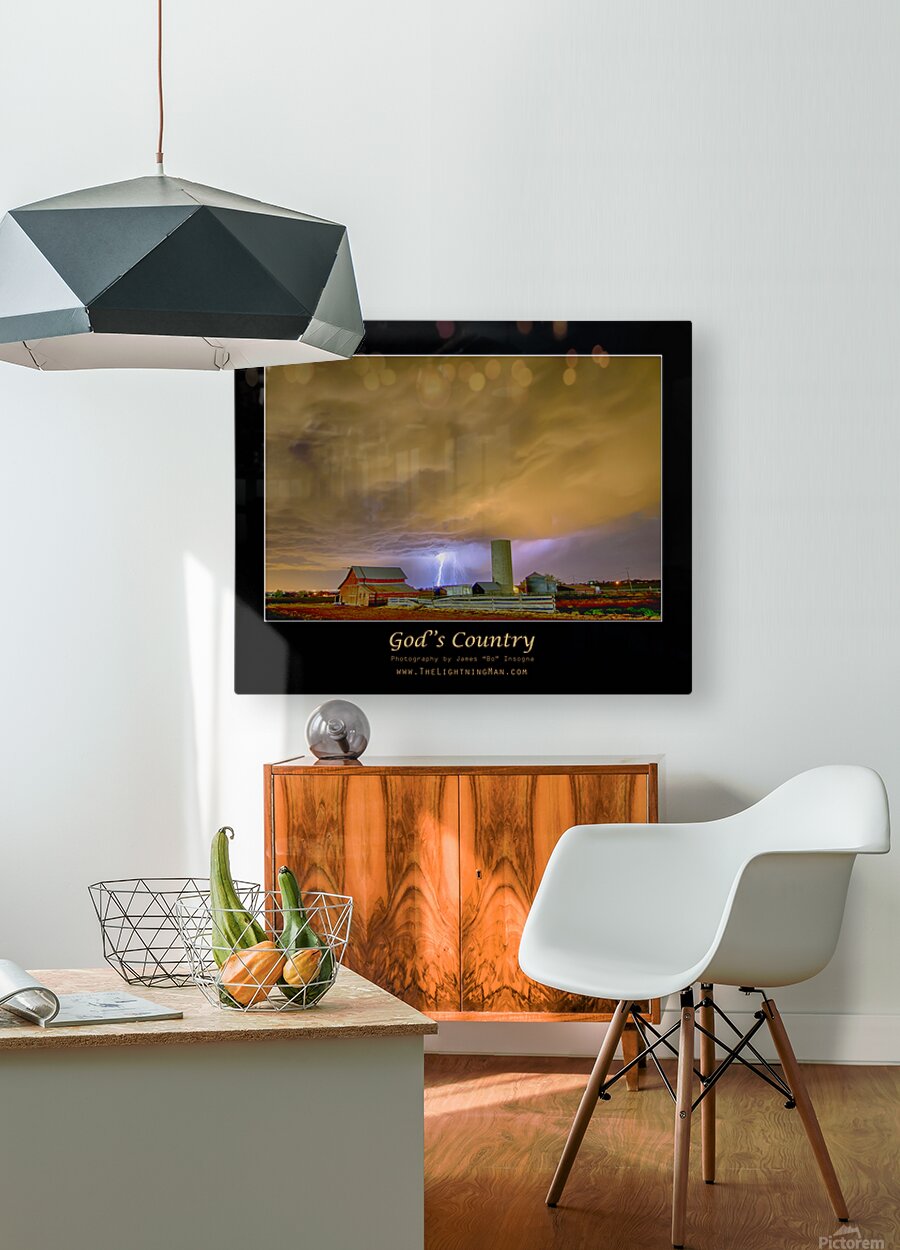 Gods Country posterfine art print. Lightning striking in the late night as this storm is hunkering down on this farm North East of Longmont Colorado i...[+]