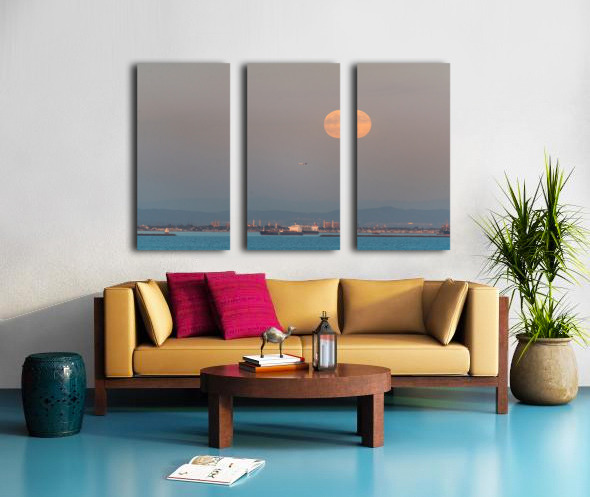 Full Moon Rising Over the Port of Los Angeles and LAX Arrival Impression sur toile