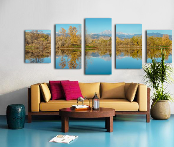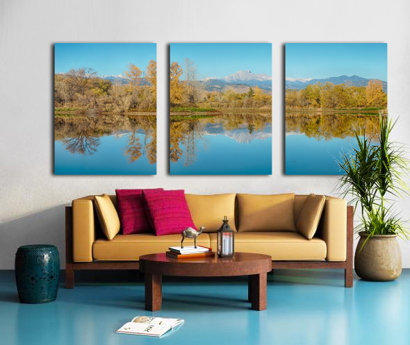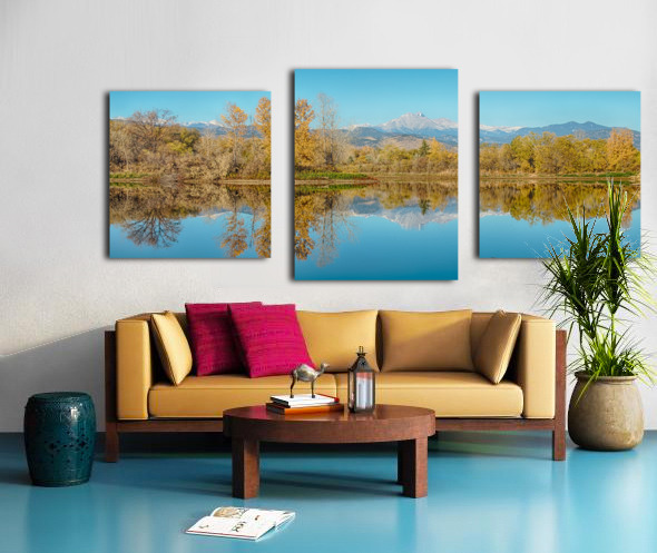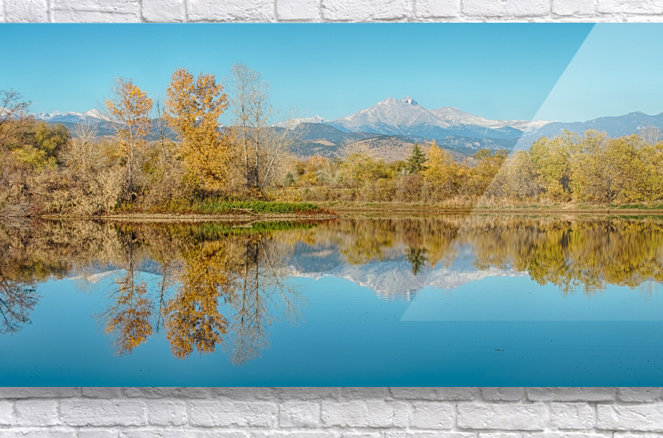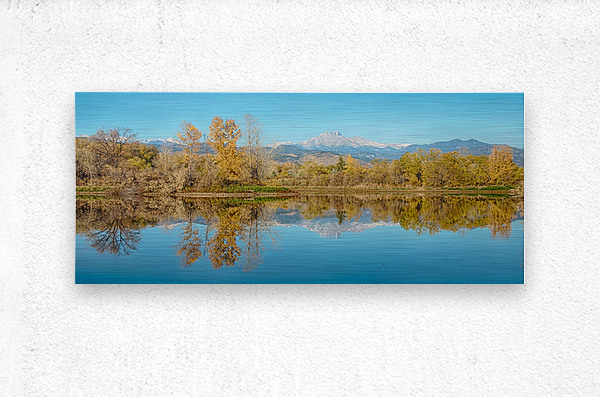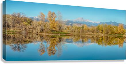 All photographer love days that are very calm with no wind and water turns to glass. That was the case this morning when I shot this image with clear blue skies over head. Scenic autumn season view of the twin Peaks Mt meeker 13911 ft and Longs Peak 14256 ft with mirror like reflections from Golden Ponds in Longmont Colorado Boulder County. Panorama version. Colorado fine art nature landscape photography poster prints decorative canvas prints acrylic prints metal prints corporate artwork greeting cards and stock images by James Bo Insogna C - All Rights Reserved. Please feel Free to share our links with Family or Friends who may also enjoy them. If you like my Art Gallery please spread the word and press the Pinterest FB Google+ Twitter or SU Buttons! Thank you! *PLEASE NOTE WATERMARKS WILL NOT BE ON THE PURCHASE PRINTS*