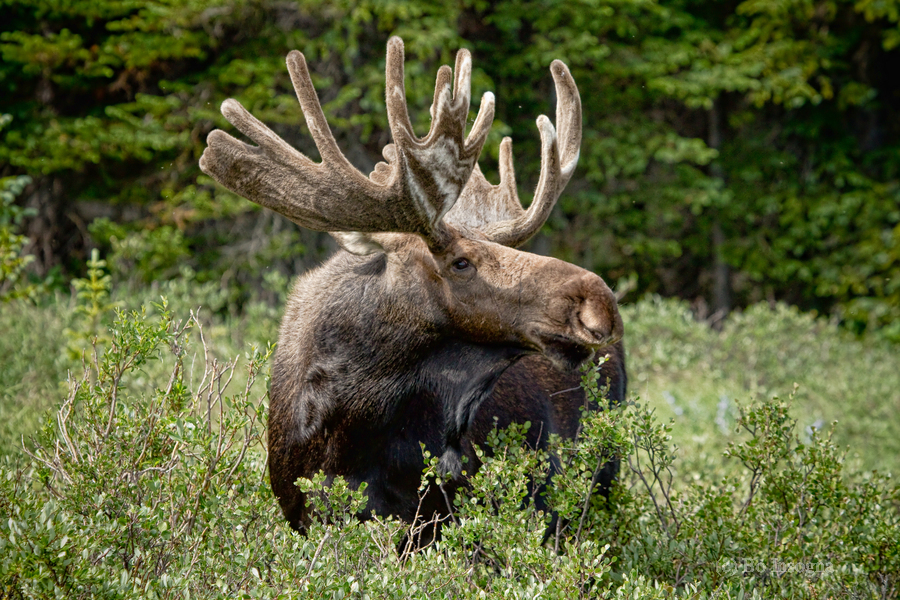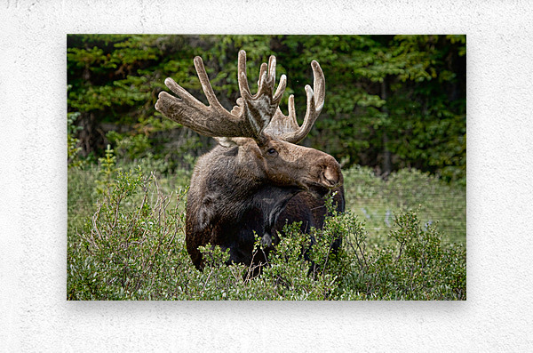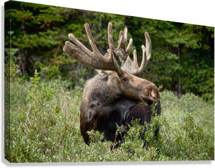 The North America moose or Eurasian elk is the largest extant species in the deer family. Moose are distinguished by the palmate antlers of the males. Moose have been reintroduced to some areas like the Indian Peak Wilderness. Currently most moose are found in Canada Alaska Scandinavia and Russia. Their diet consists of both terrestrial and aquatic vegetation. The most common moose predators are wolves bears and humans. Unlike most other deer species moose are solitary animals and do not form herds. Although generally slow-moving and sedentary moose can become aggressive and move surprisingly quickly if angered or startled. Their mating season in the autumn can lead to spectacular fights between males competing for a female. Colorado fine art nature landscape wildlife photography poster prints decorative canvas prints acrylic prints metal prints corporate artwork greeting cards and stock images by James Bo Insogna C - All Rights Reserved. Please feel Free to share our links with Family or Friends who may also enjoy them. If you like my Art Gallery please spread the word and press the Pinterest FB Google+ Twitter or SU Buttons! Thank you! *PLEASE NOTE WATERMARKS WILL NOT BE ON THE PURCHASE PRINTS*