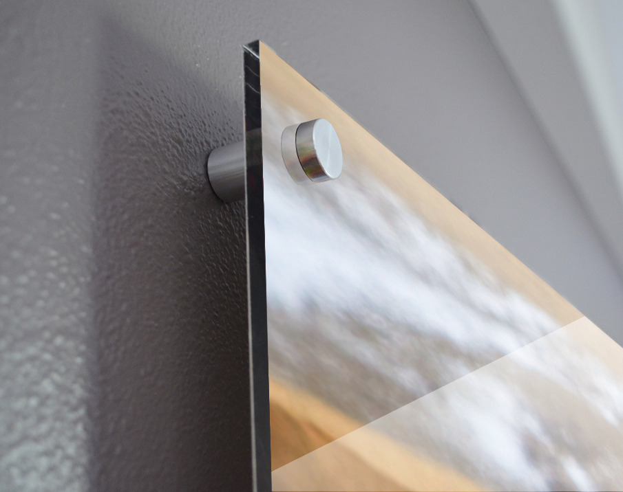 Impression sur acrylique avec entretoises ( cylindres métalliques )