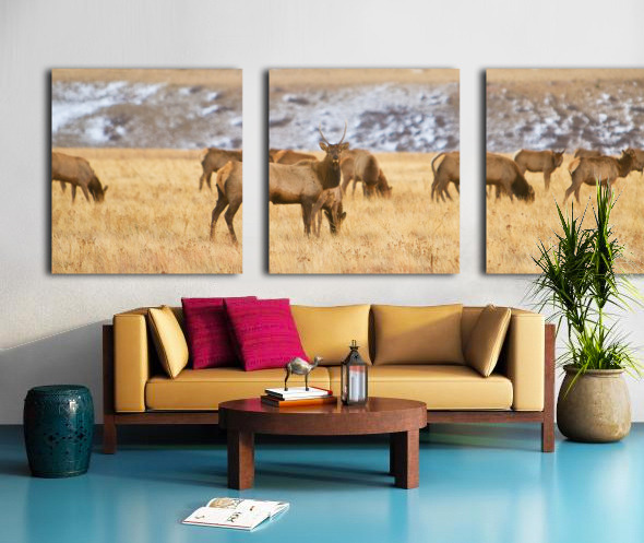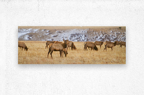 Elk Heard Colorado Foothills Plains Panorama Impression sur bois