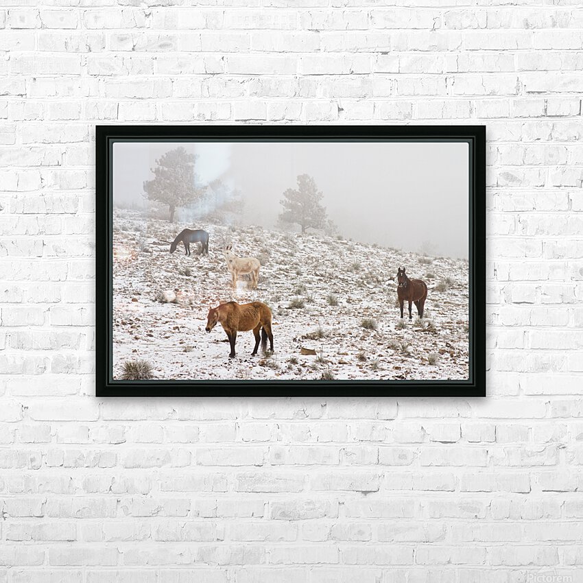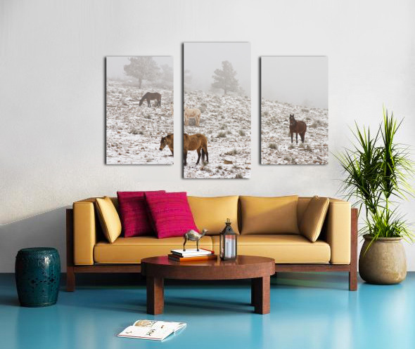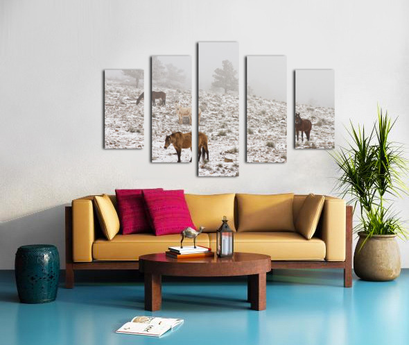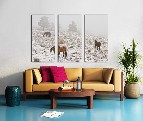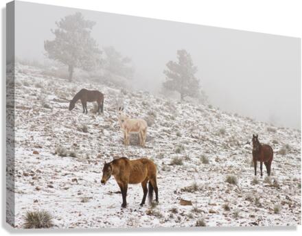 Rocky Mountain Horses Snow Fog Impression sur toile