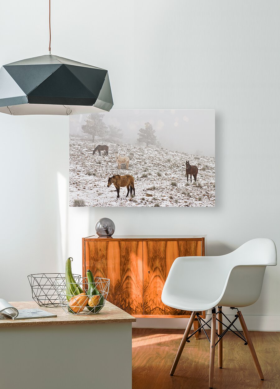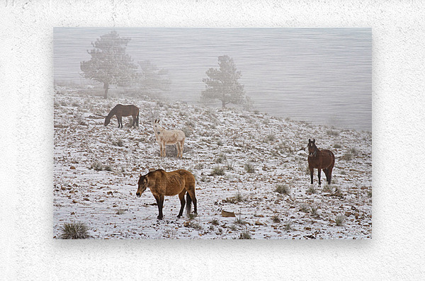 SUR CETTE OEUVRE: ROCKY MOUNTAIN HORSES SNOW FOG