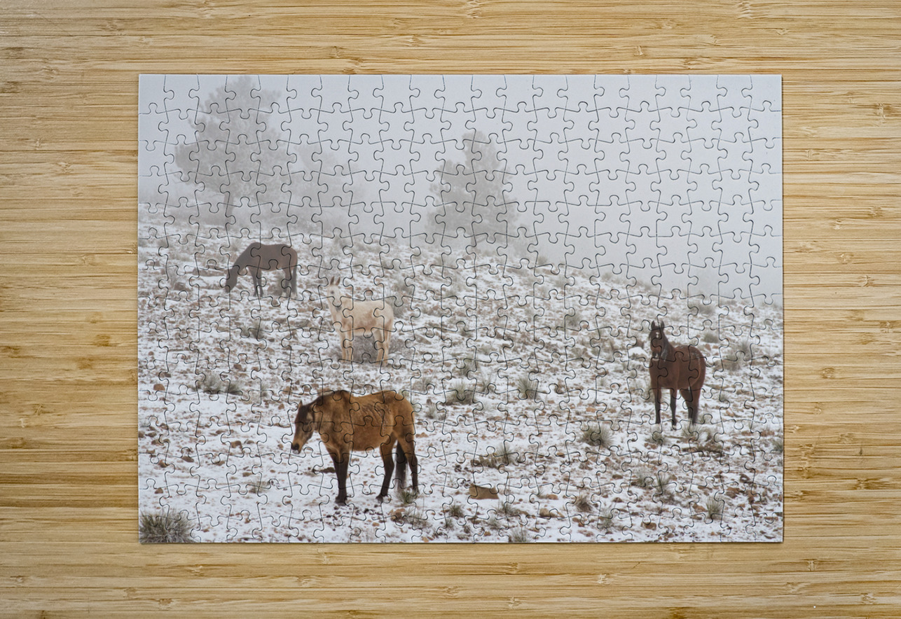 Rocky Mountain Horses Snow Fog Bo Insogna Impression de puzzle