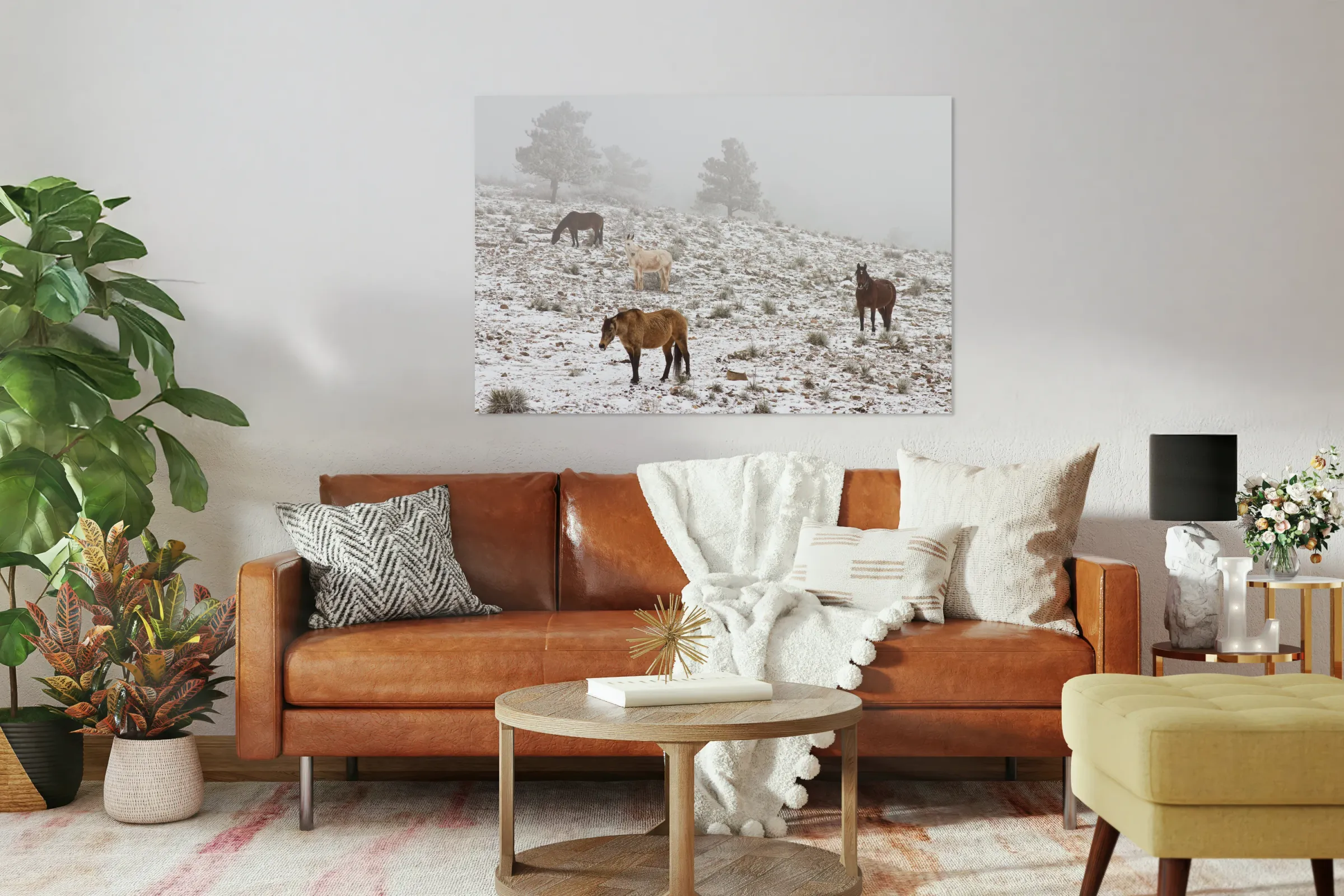 Rocky Mountain Horses Snow Fog Impression sur toile