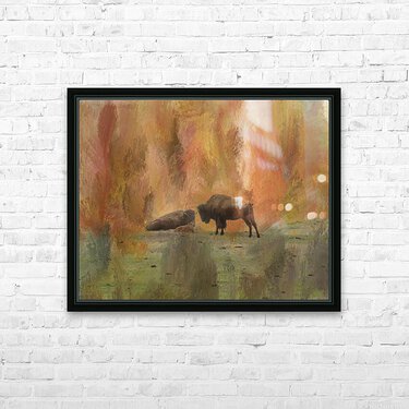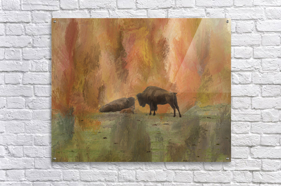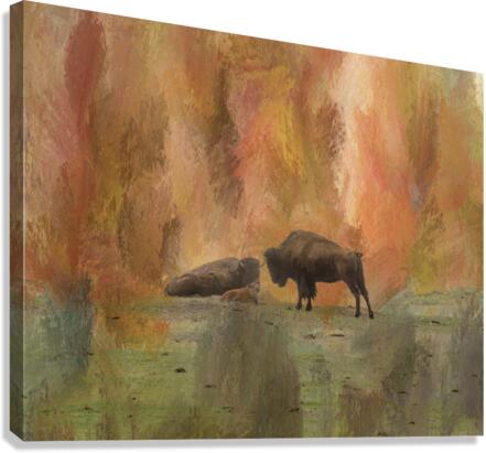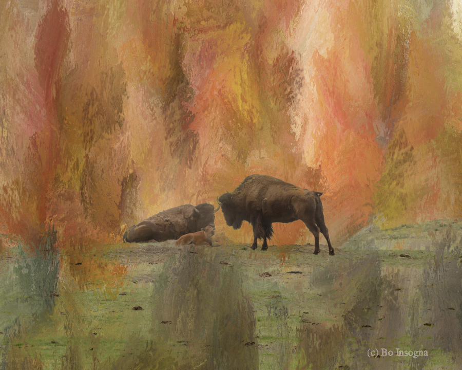 Colorful mixed media of a tender moment with a young calf buffalo. This art piece has color shades of reds orange brown gold and green. Fine art nature landscape photography images by James Bo Insogna. For more please like subscribe follow and share. Very much appreciated! All artwork and images in this gallery are the original artwork of James Bo Insogna Copyright All Rights Reserved and is protected by US and International Copyright laws.
