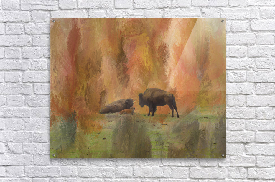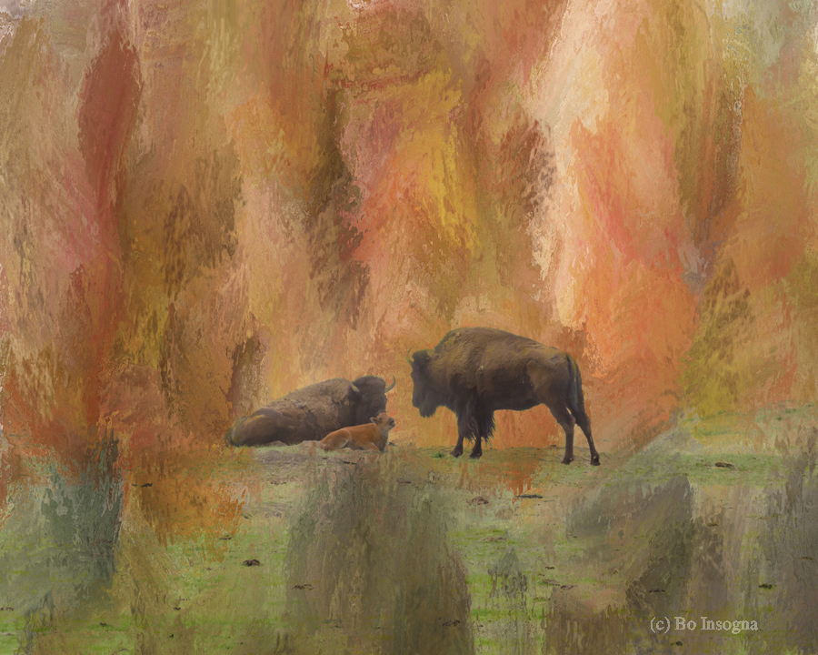Colorful Bison mixed media of color shades of reds orange brown gold and greens and a tender moment with a young calf buffalo. Fine art nature landscape photography images by James Bo Insogna. For more please like subscribe follow and share. Very much appreciated! All artwork and images in this gallery are the original artwork of James Bo Insogna Copyright All Rights Reserved and is protected by US and International Copyright laws.