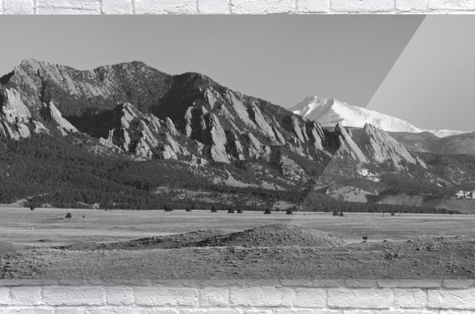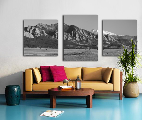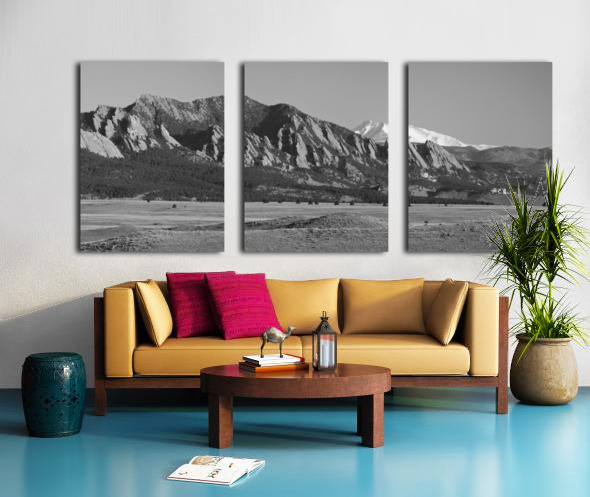 A black and white scenic landscape panorama view of the Rocky Mountains front range north of Denver with the famous Flatirons and snow covered Longs Peak 14256 feet with NCAR. Boulder Colorado. Perfect for the home decor Office decor corporate art or as a gift to a friend or love one. Order Striking Fine Art Photography by James Bo Insogna posters art prints canvas art metal art prints acrylic prints and framed art at the on-line gallery to custom your print size mat framed or unframed delivered to your door to decorate your home and office or a gift of love! Fine art nature landscape picture window frame photography poster prints decorative canvas prints acrylic prints metal prints greeting cards and stock images by By James Bo Insogna C - All Rights Reserved. 303-834-2524 *PLEASE NOTE WATERMARKS WILL NOT BE ON THE PURCHASE PRINTS*