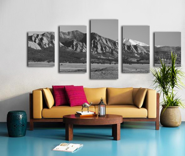 Boulder CO Flatirons Snow Covered Longs Peak Panorama BW Impression sur toile