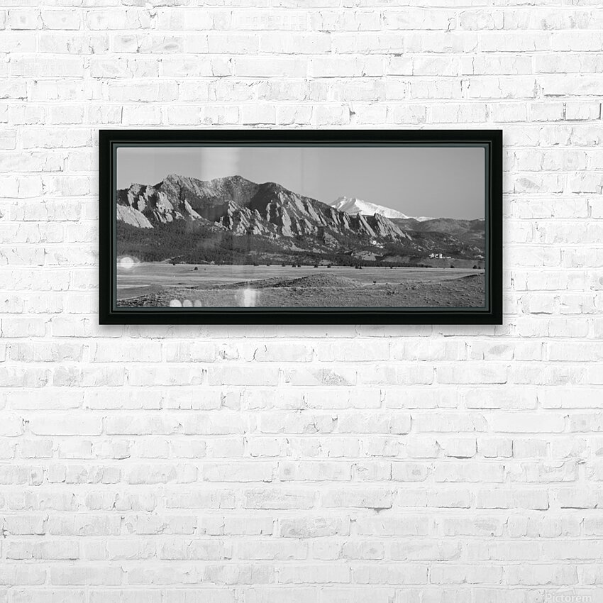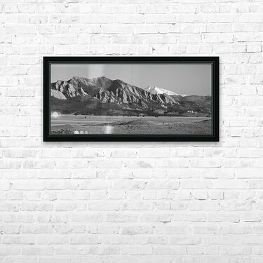 Boulder CO Flatirons Snow Covered Longs Peak Panorama BW Cadre photo