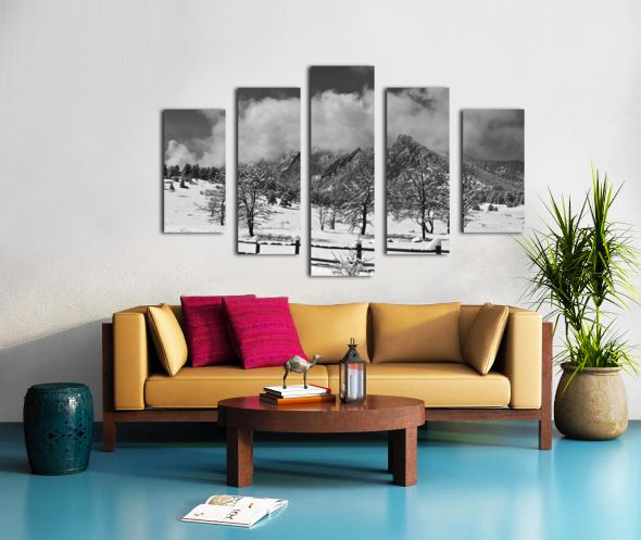 Boulder Colorado Snowy Flatirons Landscape Black and White Impression sur toile