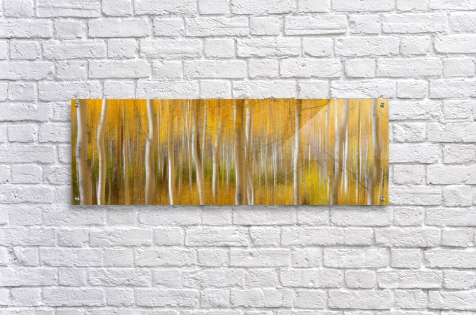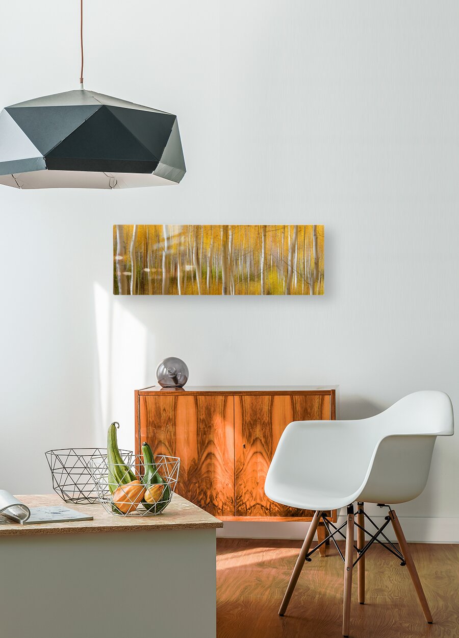 Golden aspen tree forest abstract photography. 60x20 panorama crop.