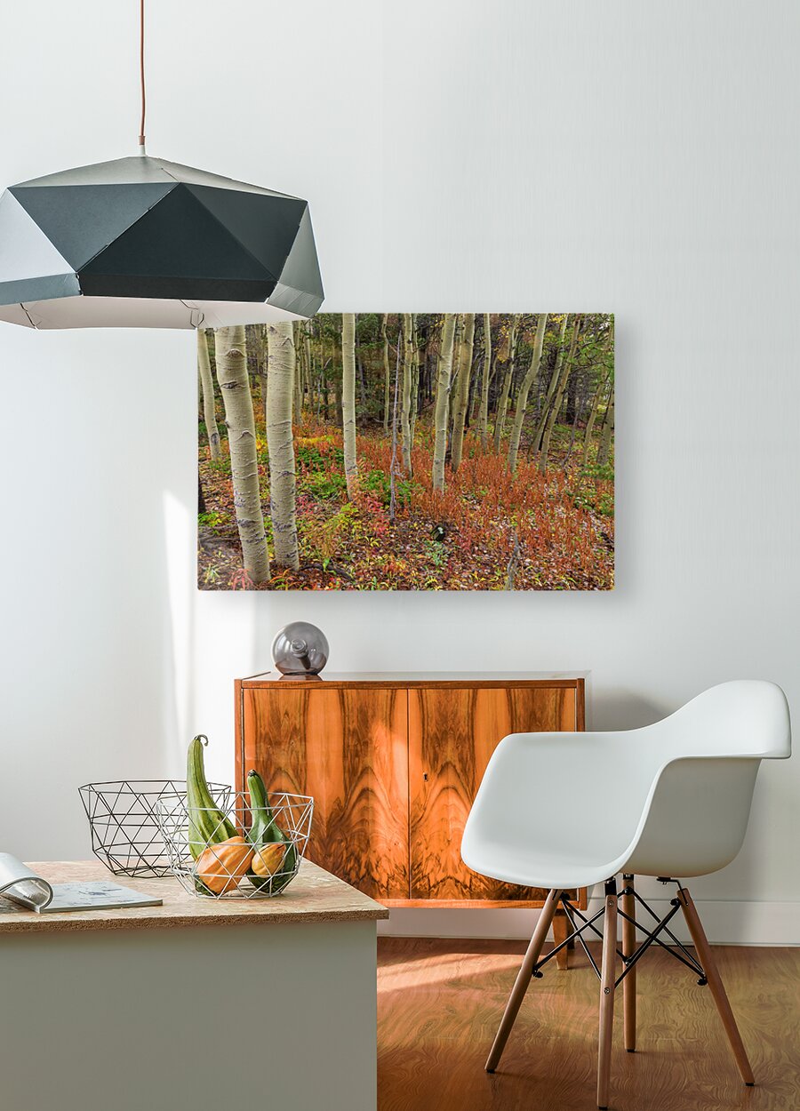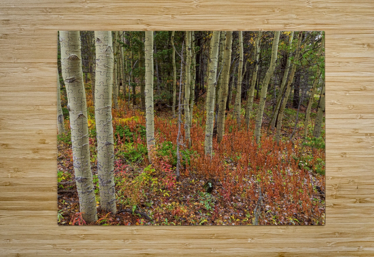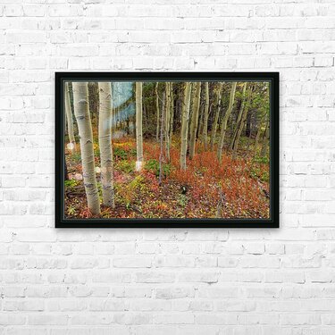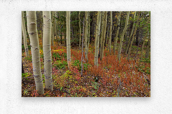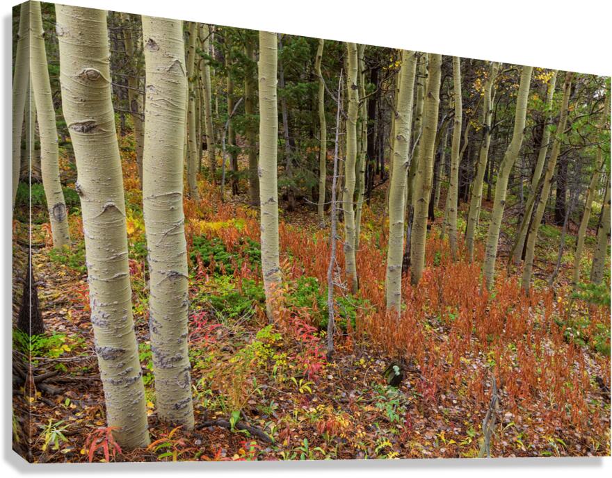 A peak into a wilderness wonderland with a colorful forest floor and the tree trunks of Colorado Aspen trees. Photo: © James Bo Insogna