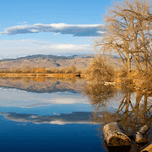 A scenic view to the west from Coot lake in Boulder County Colorado. The lake was like glass making for great reflections of puffy clouds in the sky...[+]