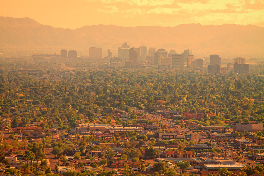 Valley of the sun Phoenix Arizona view from North Mountain. Fine art nature landscape photography prints canvas art and stock images by James Bo Inosgna. C 2011