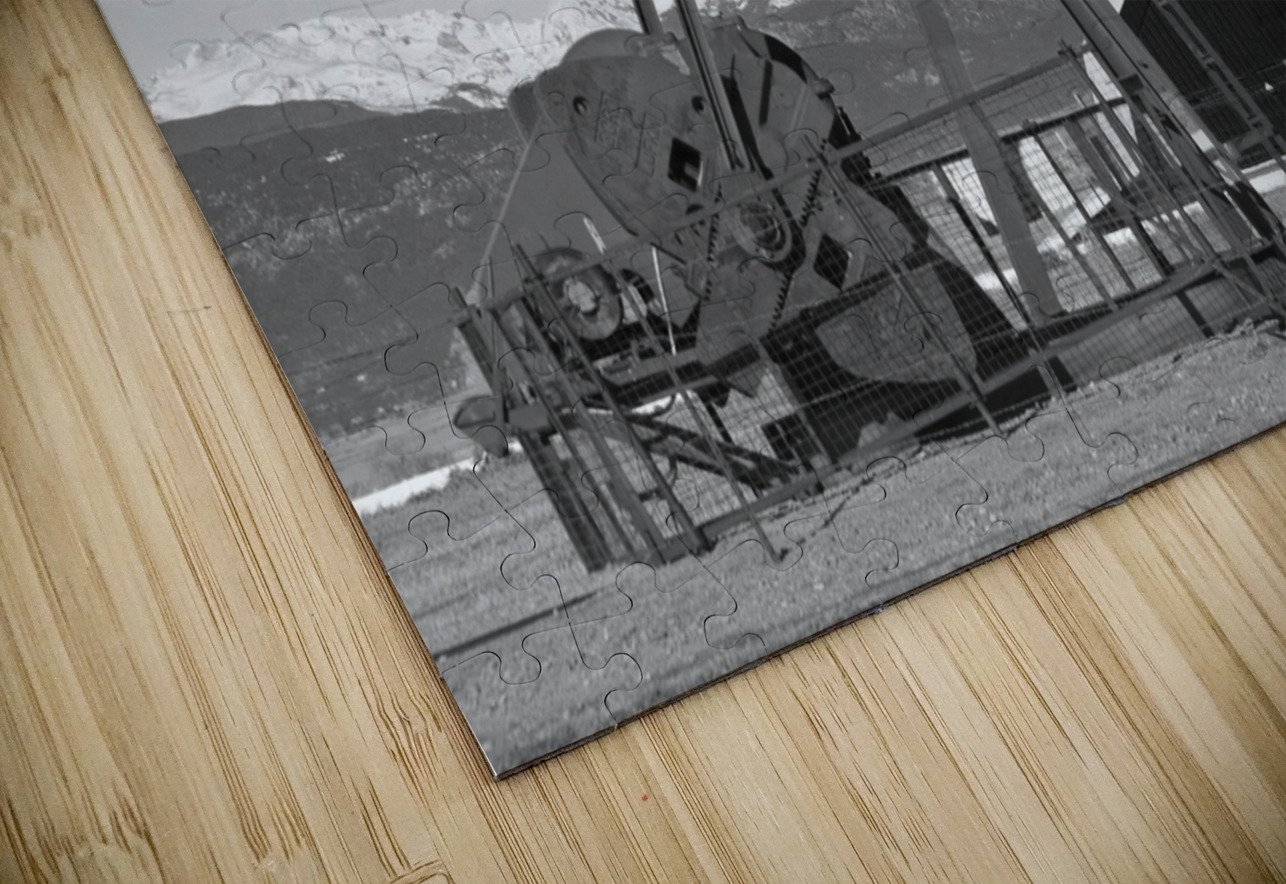 Oil Well Pumpjack Red Barn and Longs Peak BW Bo Insogna Puzzle printing