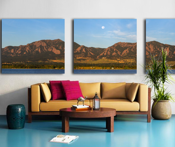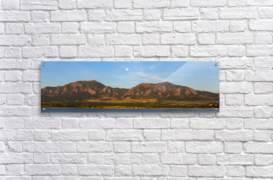 A scenic panorama view from Baseline Lake of the Front Range of the Colorado Rocky Mountains above the city of Boulder Colorado with a full blue moon starting to set right after the sunrise. Colorado fine art nature landscape panorama photography fine art prints framed prints canvas prints acrylic prints metal prints phone cases throw pillows duvet covers greeting cards and stock images by James Bo Insogna C - All Rights Reserved. Please feel Free to share our links with Family or Friends who may also enjoy them. If you like my Art Gallery please spread the word and press the Pinterest FB Google+ Twitter or SU Buttons! Thank you!