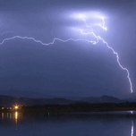 Lightning bolts giving off electrical arcs in a stormy night sky above the Colorado Rocky Mountains foothills in north Boulder County. Scenic landsc...[+]