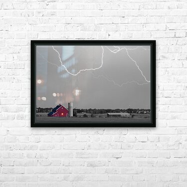 C2C Red Barn Lightning Rodeo BW SC Picture Frame Printing
