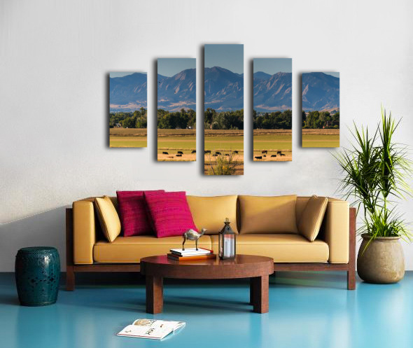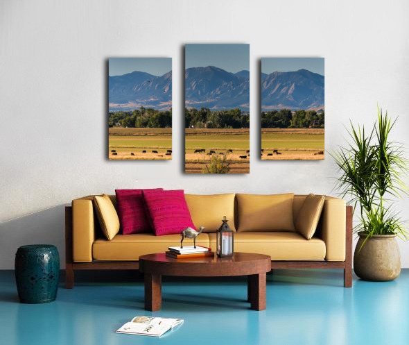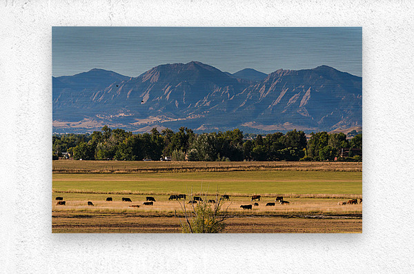 Get this artwork "Boulder Flatirons and Cows" in a framed print.