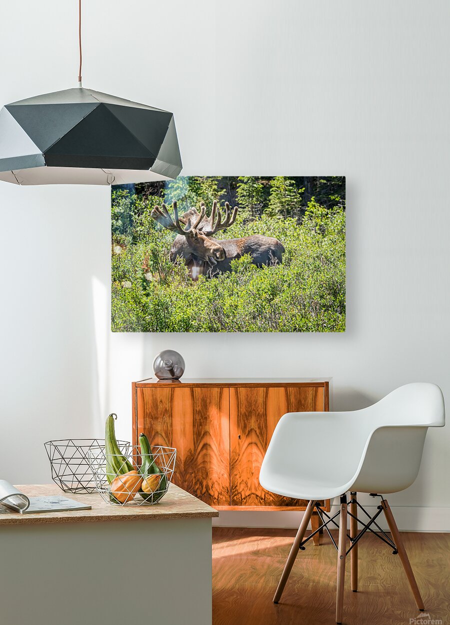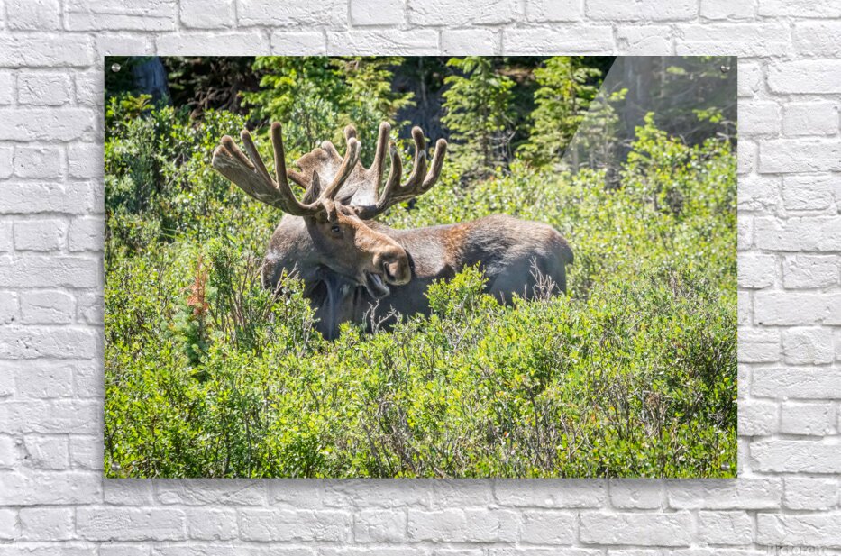 I had the pleasure of chasing moose all day long and chasing stars all night long at at Brainard lake in the Indian Peaks Wilderness Area Roosevelt National Forest Boulder County Colorado. This was a great sight to see this bull moose throw me a smile to make my day! I slept for two days after this photo trip. Moose Alces alces are the largest members of the deer family. On average an adult moose stands between five and seven feet high at the shoulder. Large males can weigh as much as 1500 pounds while females are roughly three-quarters of this size. Both sexes have chocolate-brown fur a humped shoulder a bulbous nose and a ball of skin called a bell that hangs from their neck. The long legs of moose allow them to travel through deep snow and even swim in deep water. They also use their legs to kick predators or maneuver over obstacles on the ground. Males called bulls grow large palmate antlers which can reach five feet across and weigh up to 77 pounds. Bulls use antlers during the fall mating season to spar or fight with other males as they compete for mates. Females called cows do not have antlers but they select a bull based on his antler size. After the mating season bulls begin dropping their antlers in the late fall to conserve energy for the winter. The antlers begin to grow again in early spring. They take three to five months to fully develop and are covered with velvety skin during this time. The size and growth of antlers depends on diet and age. Symmetrical antlers reflect the general health of the bull. Antlers typically grow back larger each year. source NPS.gov Colorado fine art wildlife photography fine art prints framed prints canvas prints acrylic prints metal prints phone cases throw pillows duvet covers greeting cards and stock images by James Bo Insogna C - All Rights Reserved. Please feel Free to share our links with Family or Friends who may also enjoy them. If you like my Art Gallery please sp