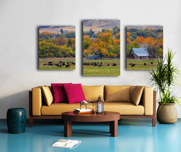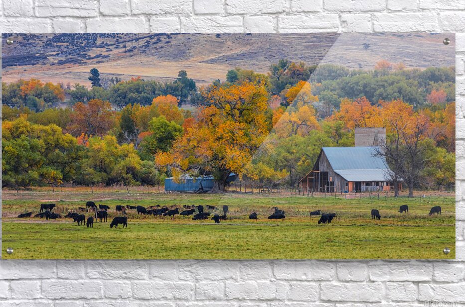 Colorful scenic rural country panoramic landscape with an old barn and cattle grazing in Boulder County Colorado.