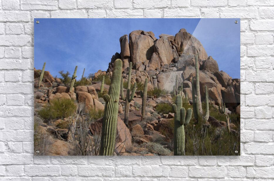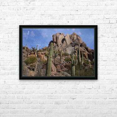Get this artwork "Scenic with Big Boulders Towering Giants of the Sonoran Desert" in a framed print.