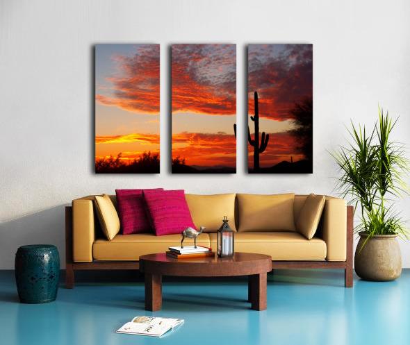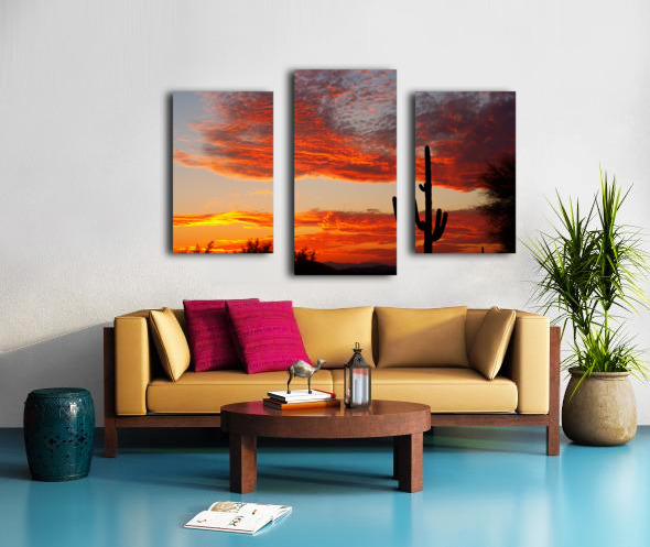 Fiery Arizona Sunset Behind a Silent Saguaro Canvas print