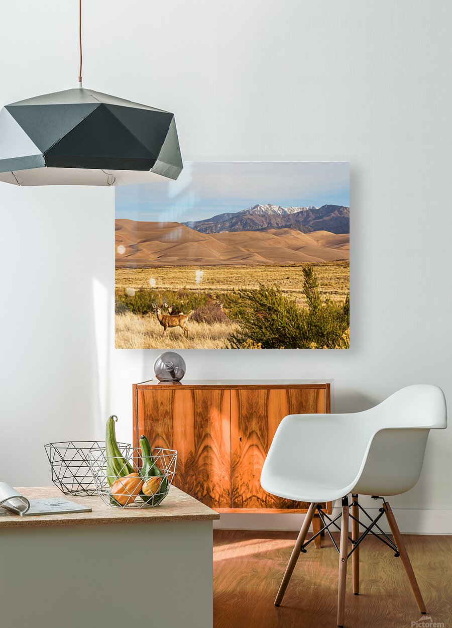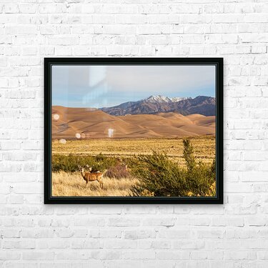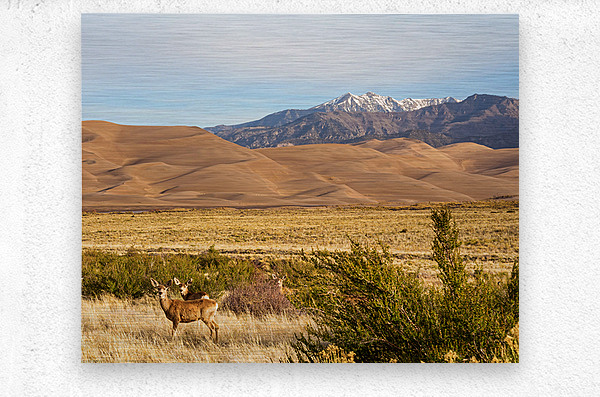 Get this artwork "Deer And The Great Colorado Sand Dunes" in a framed print.