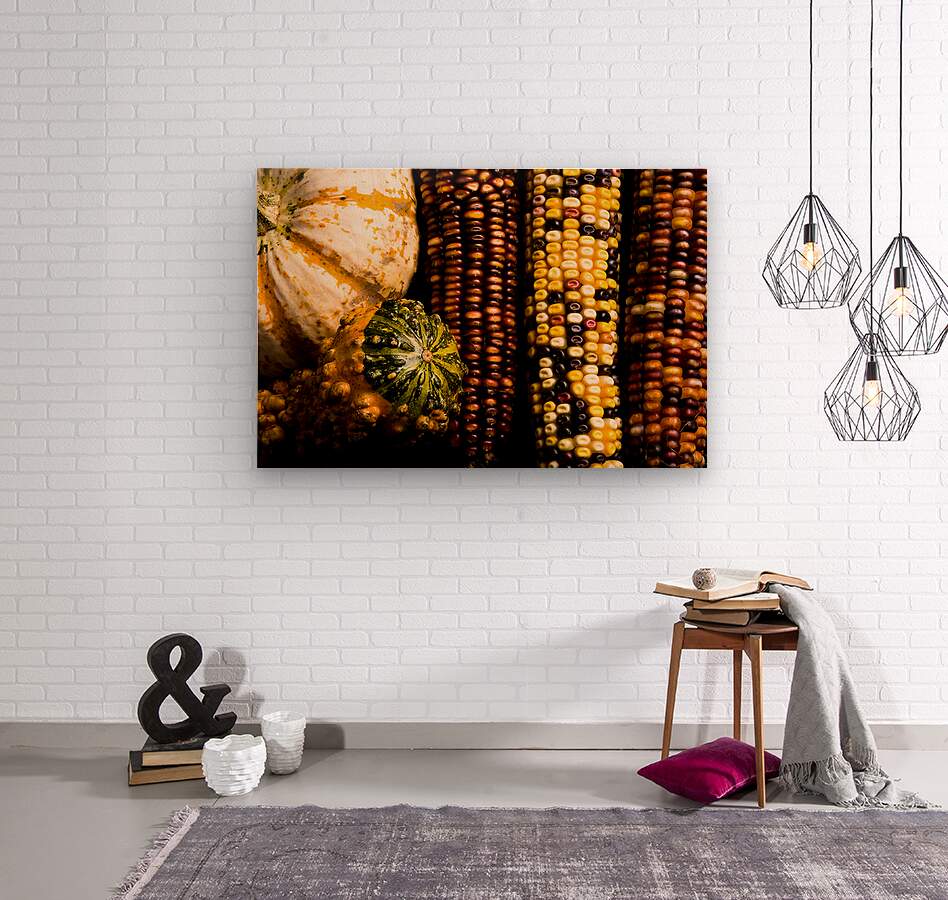 An enchanting fine art photograph capturing the rich textures and colors of a fall harvest. The image features the intricate patterns of Indian corn k...[+]