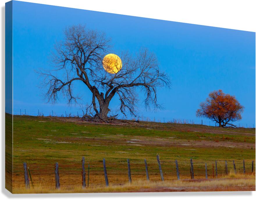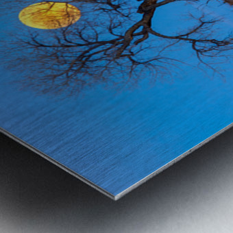 A rare and exquisite remastered limited edition fine art photograph capturing the luminous November supermoon as it rises a brilliant golden orb suspended in a twilight sky. The image is a celestial ballet with the moons radiant glow held in the delicate outstretched branches of a lone silhouetted tree. The scene is a perfect fusion of earth and cosmos where the soft gradations of a purple and blue sky meet the warm light of the moon. This remastered piece presented in a limited numbered edition is a tribute to the quiet majesty of the universe. Its a sophisticated compelling work for collectors offering a timeless moment of cosmic wonder for any space. Each print is signed by the artist and includes a certificate of authenticity.