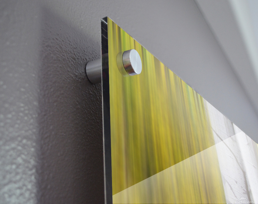A refined abstract forest composition featuring luminous white aspen trunks layered with flowing ribbons of golden autumn color. This motion-inspired ...[+]