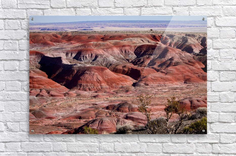 Vivid fine art landscape photography of the Painted Desert in Arizona showcasing sweeping badlands layered red rock formations and rich earth tones stretching to the horizon. This high-impact desert scene captures the unique geology and dramatic textures of the American Southwest making it ideal for wall art collectors and nature enthusiasts seeking bold colorful desert imagery. The Painted Desert image 8062. The Painted Desert is a 146-square-mile area of badlands located in Northern Arizona in the United States. The Arizona desert stretches from the Grand Canyon National Park into the Petrified Forest National Park and runs roughly astride and just north of the Little Colorado and the Puerco Rivers. Much of the area within the Petrified Forest National Park is protected as the Petrified Forest National Wilderness Area.