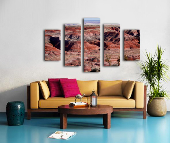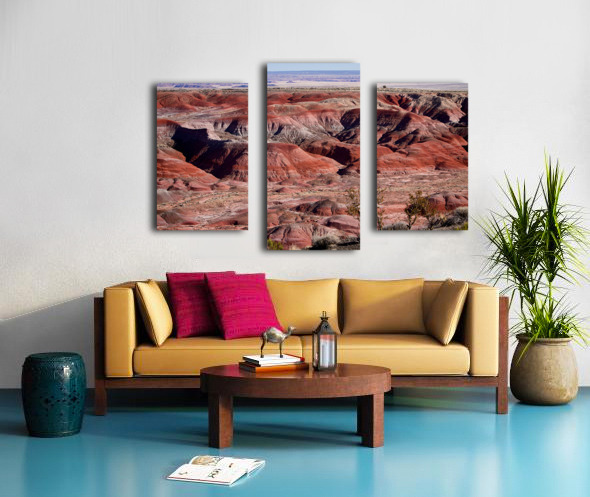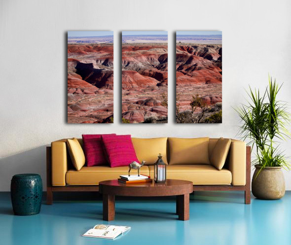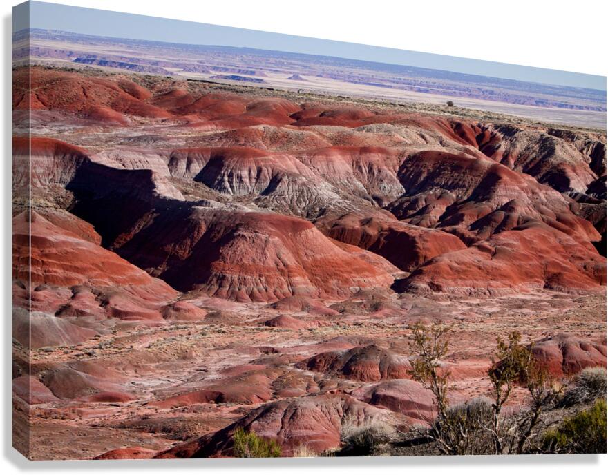 Vivid fine art landscape photography of the Painted Desert in Arizona showcasing sweeping badlands layered red rock formations and rich earth tones stretching to the horizon. This high-impact desert scene captures the unique geology and dramatic textures of the American Southwest making it ideal for wall art collectors and nature enthusiasts seeking bold colorful desert imagery. The Painted Desert image 8062. The Painted Desert is a 146-square-mile area of badlands located in Northern Arizona in the United States. The Arizona desert stretches from the Grand Canyon National Park into the Petrified Forest National Park and runs roughly astride and just north of the Little Colorado and the Puerco Rivers. Much of the area within the Petrified Forest National Park is protected as the Petrified Forest National Wilderness Area.