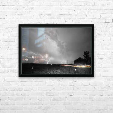 Black and White Lightning Thunderstorm with Color Light Trail Picture Frame Printing