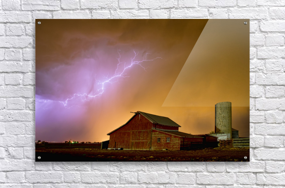 There is not a better place to watch a thunderstorm with lightning striking and putting on a show then from the open space of a farm. A very active spring storm striking above this cool red barn out in the agriculture plains north east of Longmont Colorado. The colors in the clouds are from the city lights of Longmont. One of my most favorite places to watch and shoot a storm. Colorado fine art nature landscape weather photography poster prints decorative canvas prints acrylic prints metal prints corporate artwork greeting cards and stock images by storm chaser James Bo Insogna aka The Lightning Man .com C - All Rights Reserved. Please feel Free to share our links with Family or Friends who may also enjoy them. If you like my Art Gallery please spread the word and press the Pinterest FB Google+ Twitter or SU Buttons! Thank you! *PLEASE NOTE WATERMARKS WILL NOT BE ON THE PURCHASE PRINTS*