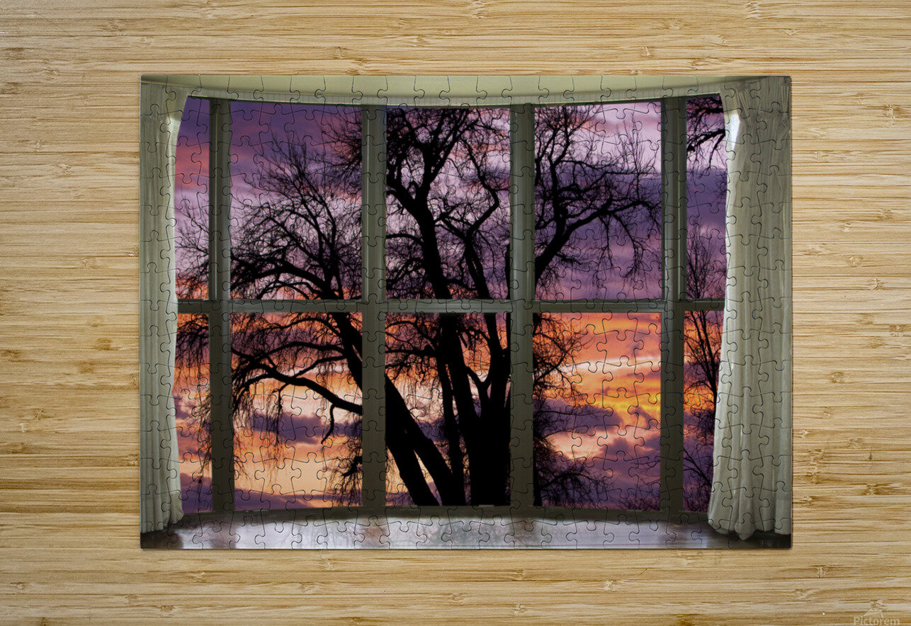 A beautifully colorful sunset view from a bay window. Lots of shades of purple red oranges and yellows. Bring nature indoors now you can have a window with a view in any room with our picture window fine art striking photography nature landscape canvas wraps and prints. ***PLEASE NOTE: WATERMARKS WILL NOT BE ON THE PURCHASE PRINTS***