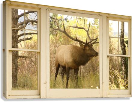 A dominant bull elk in colorful Colorado Country window view. Now you can have a window with a view in any room with our picture window fine art str...[+]