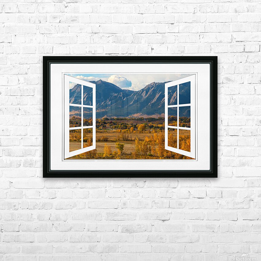 Boulder Flatirons Autumn White Open Window View Picture Frame Printing