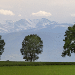 Panoramic view of the Front Range from a nice spot on the farming plains up to the Rocky Mountain Peaks above Boulder and Lyons Colorado Boulder County. Taken with my 400mm lens to bring in the peaks.