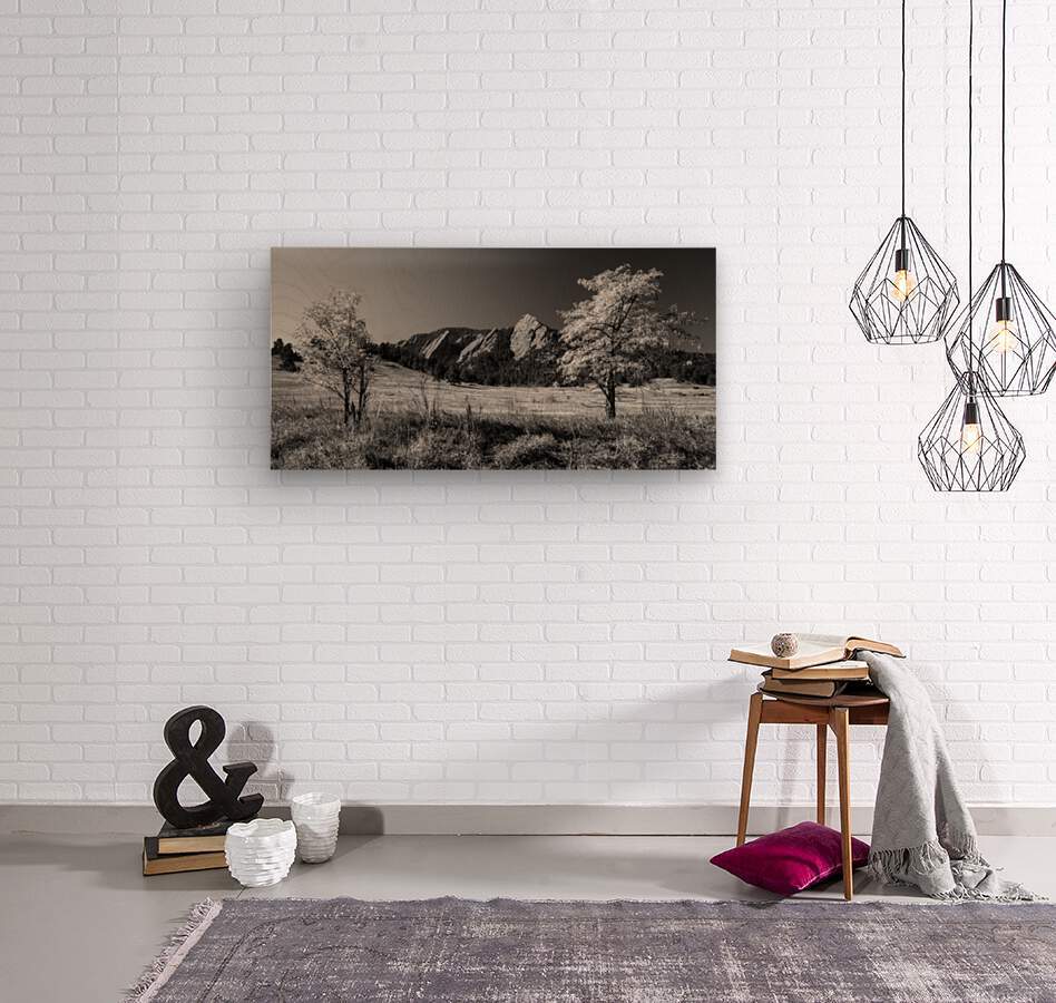 Boulder Colorado Flatirons Black White Pano  Wood print