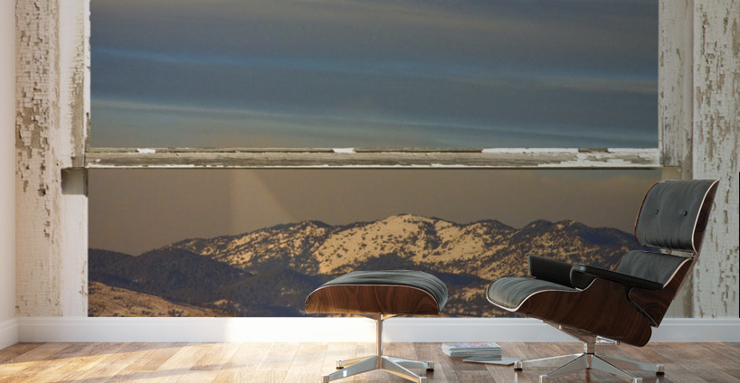 HORSES MOON MOUNTAINS SNOW WHITE PEEL RUSTIC WINDOW