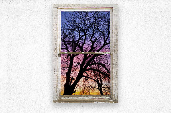 Portrait view of an early morning colorful sunrise behind a silhouetted tree through a white peeling rustic farm house picture window frame. Your very own private window view into the beautiful rocky mountains autumn forest. Bring nature indoors now you can add a window with a view to any room in your home or office with our picture window frame fine art striking photography nature landscape art prints. The IMAGE is the FRAME how cool is that! PLEASE NOTE : The Window Frame is part of the image. Question: Do you have a home or office room without any windows? Do you want to set the mood in a room decor? Do you dream of a room with a view? The Answer: Now you can have a window with a view in any room with our NEW picture window frame fine art striking photography nature landscape poster prints canvas wraps acrylic fine art prints and metal prints all with a view and ready to hang by photographer James Bo Insogna C All Rights Reserved. This is an incredible way to decorate your office walls home walls cafe restaurant boardroom waiting room trade booth corporation or almost any commercial space. Colorado Fine art nature landscape photography poster prints decorative canvas prints acrylic prints metal prints corporate artwork greeting cards and stock images by James Bo Insogna C ? All Rights Reserved. *PLEASE NOTE WATERMARKS WILL NOT BE ON THE PURCHASE PRINTS*