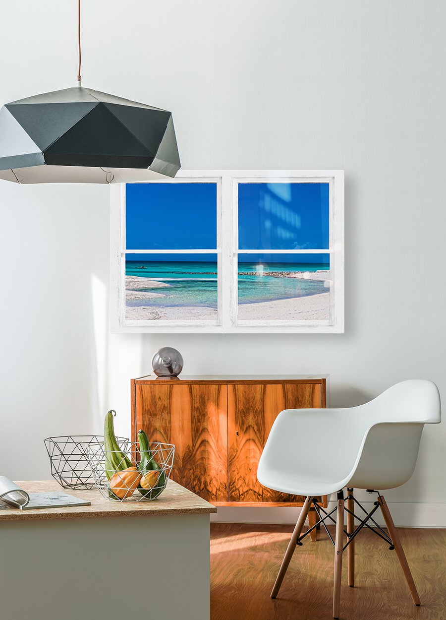 Scenic white sand beach tropical view through a classic white distressed rustic whitewashed picture window. Your very own private window view into the tropics vacation view or for motivation. Create a fine art photography optical illusion to your decor of the beautiful colorful topical Island paradise a view through an old distressed rustic white window . Bring nature indoors now you can add a window with a view to any room in your home or office with our picture window nature landscape art prints. The IMAGE is the FRAME how cool is that! Do you have a home or office room without any windows? Do you want to set the mood in a room decor? Do you dream of a room with a view? Now you can have a window with a view in any room with our picture window frame fine art striking photography nature landscape available as a poster prints canvas wrap acrylic fine art prints and metal prints all with a view and ready to hang by photographer James Bo Insogna C All Rights Reserved. This is an incredible way to decorate your window less office walls home walls cafe restaurant boardroom waiting room trade booth corporation or almost any commercial space. *PLEASE NOTE : The Window Frame is part of the image. It is recommended ordering this image a large Acrylic Print - Metal Print - or Stretched Canvas Wrap with white sides. **PLEASE NOTE WATERMARKS WILL NOT BE ON THE PURCHASE PRINTS*